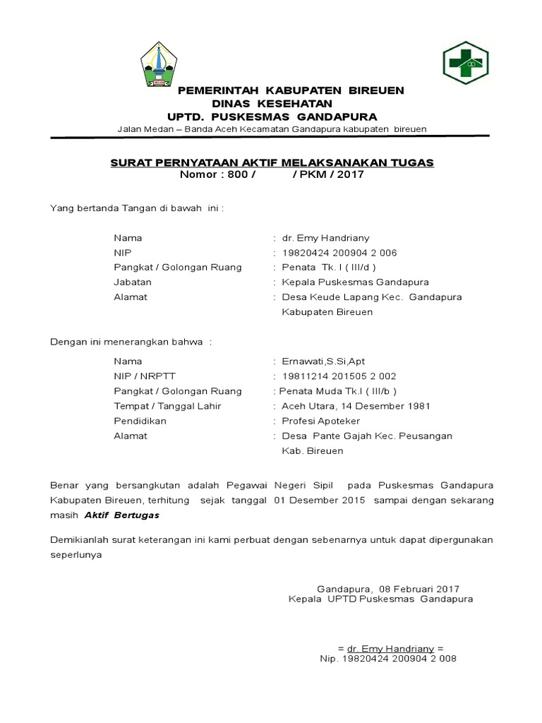 Surat Keterangan Aktif Bekerja Di Puskesmas Contoh Surat Pernyataan Kerja Di Puskesmas Apalagi Jika Kalian Sudah Memiliki Contoh Surat Keterangan Kerja from i2.wp.com Bikin surat sehat puskesmas biaya bandung andir. Di antara sekian banyak berkas lampiran, ada satu berkas atau informasi yang kita cantumkan pada surat lamaran kerja tersebut yaitu mengenai pengalaman. Setidaknya dibagian isi surat harus mempunyai nama karyawan, jabatan karyawan dan nomor identitas diri karyawan tersebut. Surat keterangan kerja adalah surat yang mana isinya menerangkan atau keterangan bahwasannya sesorang bekerja pada sebuah instansi/perusahaan maupun organasasi dengan jabatan sesuai dengan yang ada didalam surat keterangan tersebut. Isi surat tersebut adalah sikap profesionalitas ketika bekerja. Kumpulan contoh surat keterangan penghasilan, kerja untuk kpr, domisili, usaha, pindah sekolah, kuliah dan lain sebagainya, lengkap dengan file docx. Mengenai format surat keterangan kerja, anda dapat melihat berbagai contoh. Surat keterangan usaha ini berguna sebagai payung.